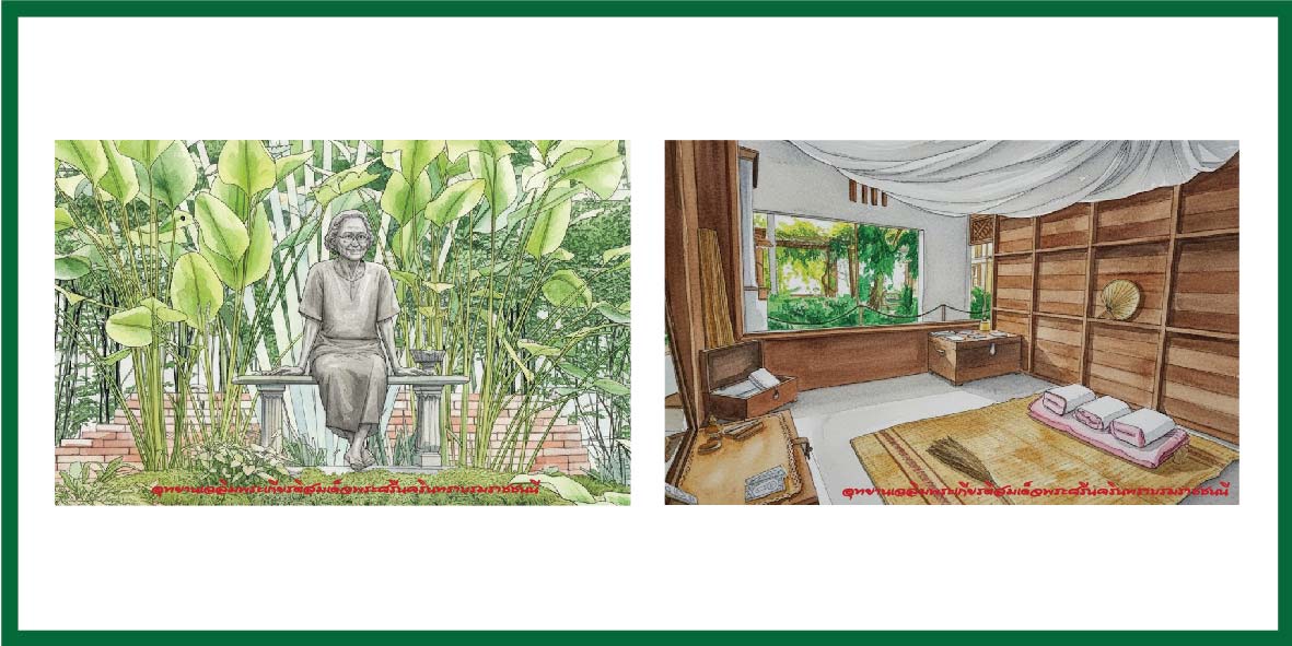 ด้านหน้าเป็นภาพในหลวงรัชกาลที่ 9 และสมเด็จย่า